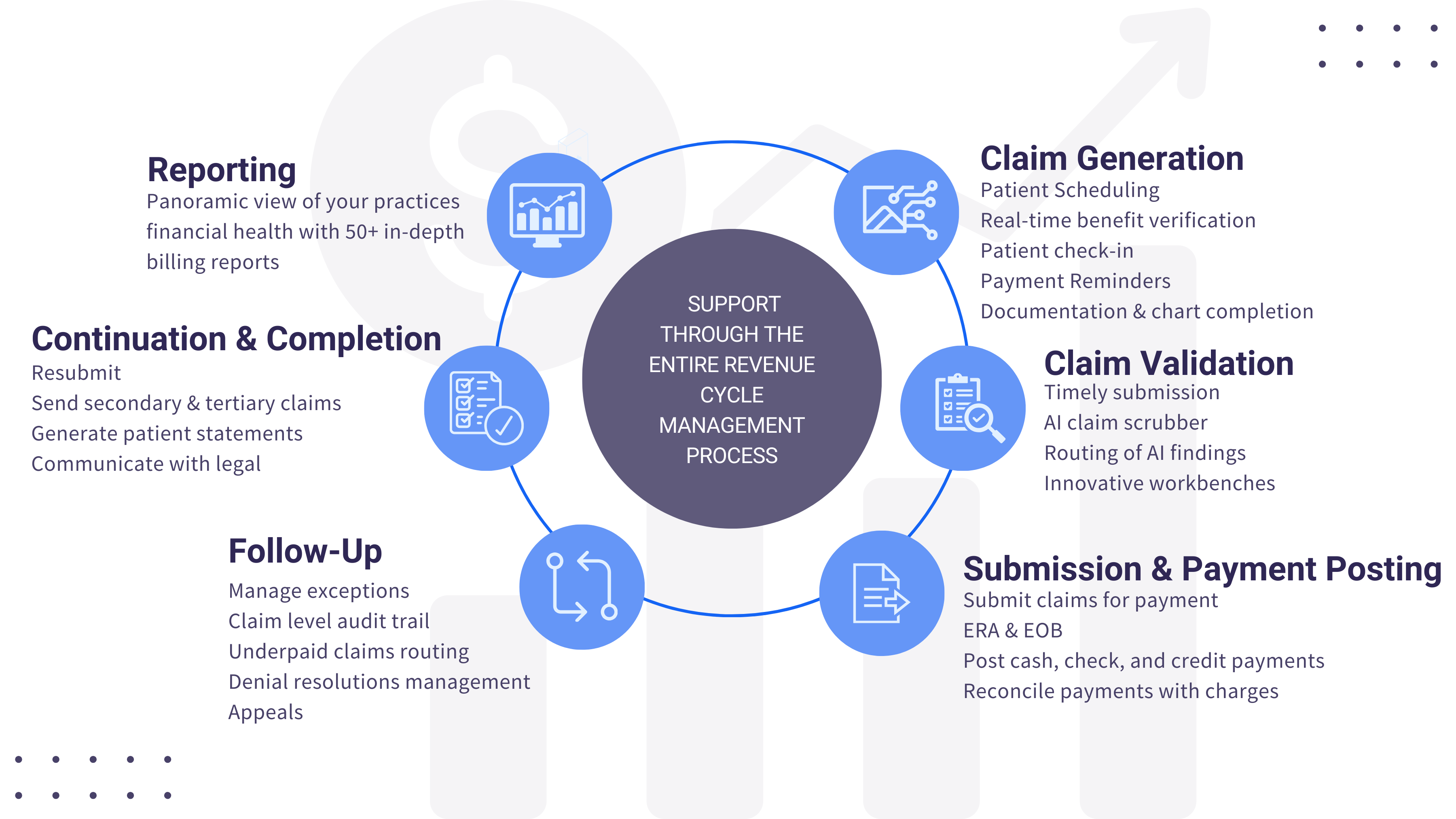 Comprehensive software solutions to support billing teams through the entire revenue cycle. Â